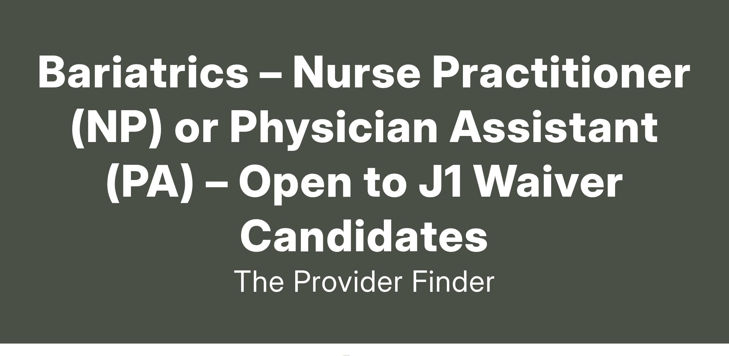 : Bariatrics Advanced Practice Provider (APP) – Nurse Practitioner (NP) or Physician Assistant (PA) – Open to J1 Waiver Candidates