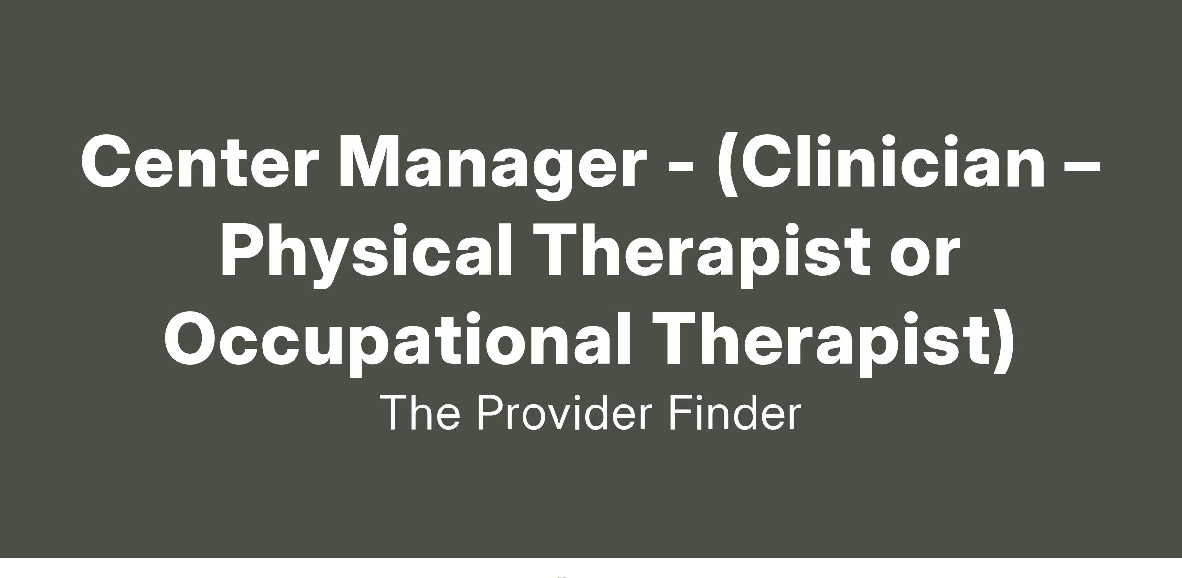 Center Manager - (Clinician – Physical Therapist or Occupational Therapist)