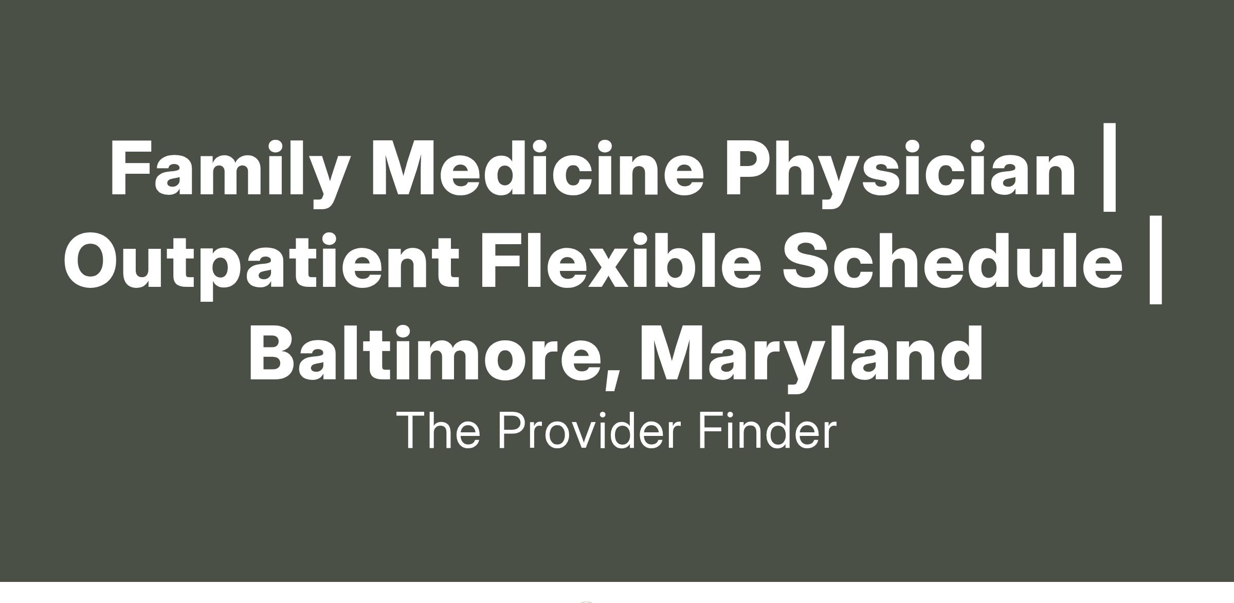 This great Baltimore non-profit healthcare organization seeks an outpatient family medicine physician to join its amazing and expanding primary care team to serve the patients and families of the metro city and its surrounding suburbs.