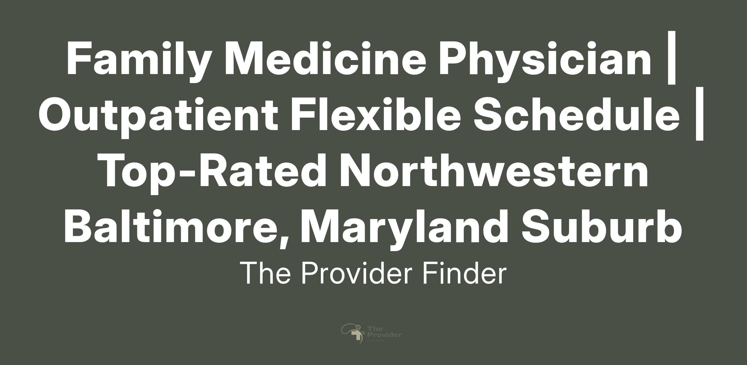 This great Baltimore non-profit healthcare organization seeks an outpatient family medicine physician to join its amazing and expanding primary care team to serve the patients and families of the metropolitan city within this established clinic located in a nearby A-rated northwestern suburb.