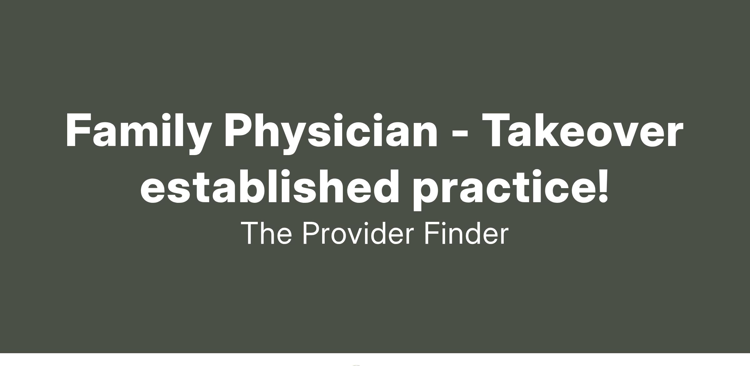 Job Title: Family Medicine Physician - Practice for sale - Take over established patient load of 30+ years!