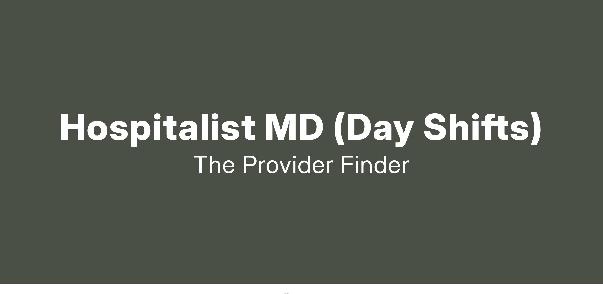 Job Title: Hospitalist MD (Day Shifts)