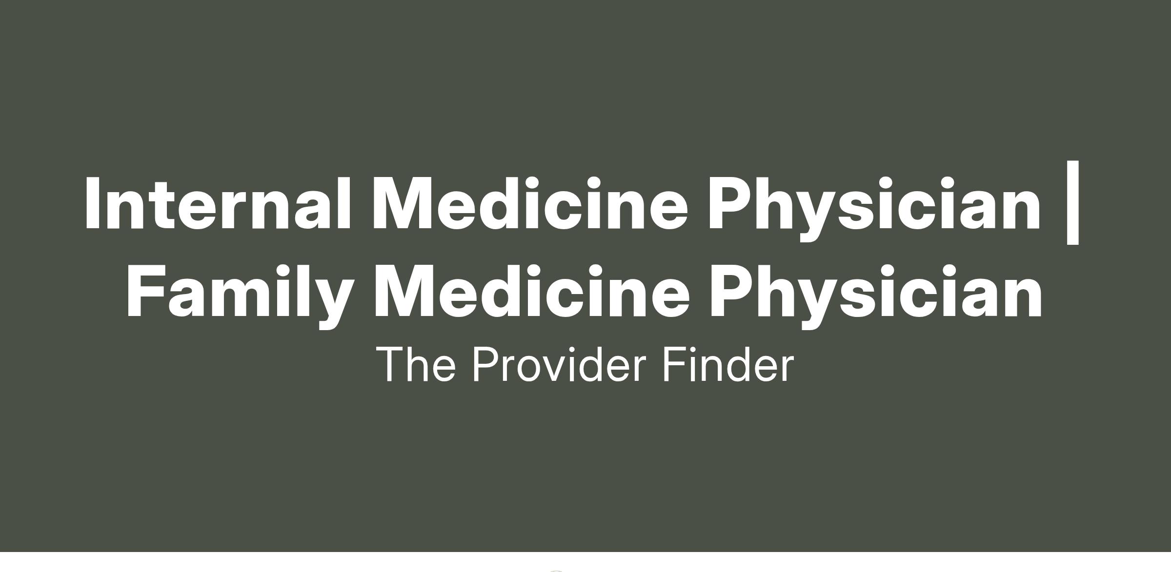 Internal Medicine Physician | Family Medicine Physician