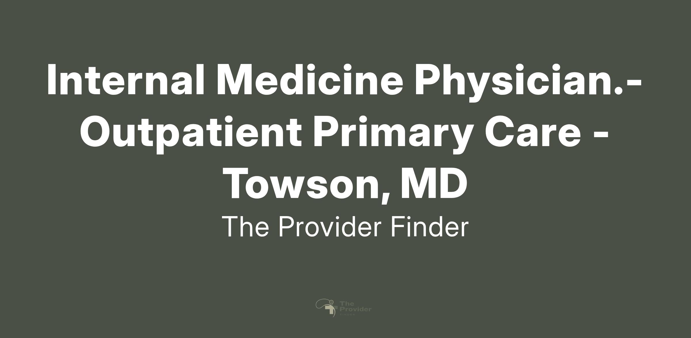 Top medical group in Maryland is looking to hire a General Internal medicine for Towson area.