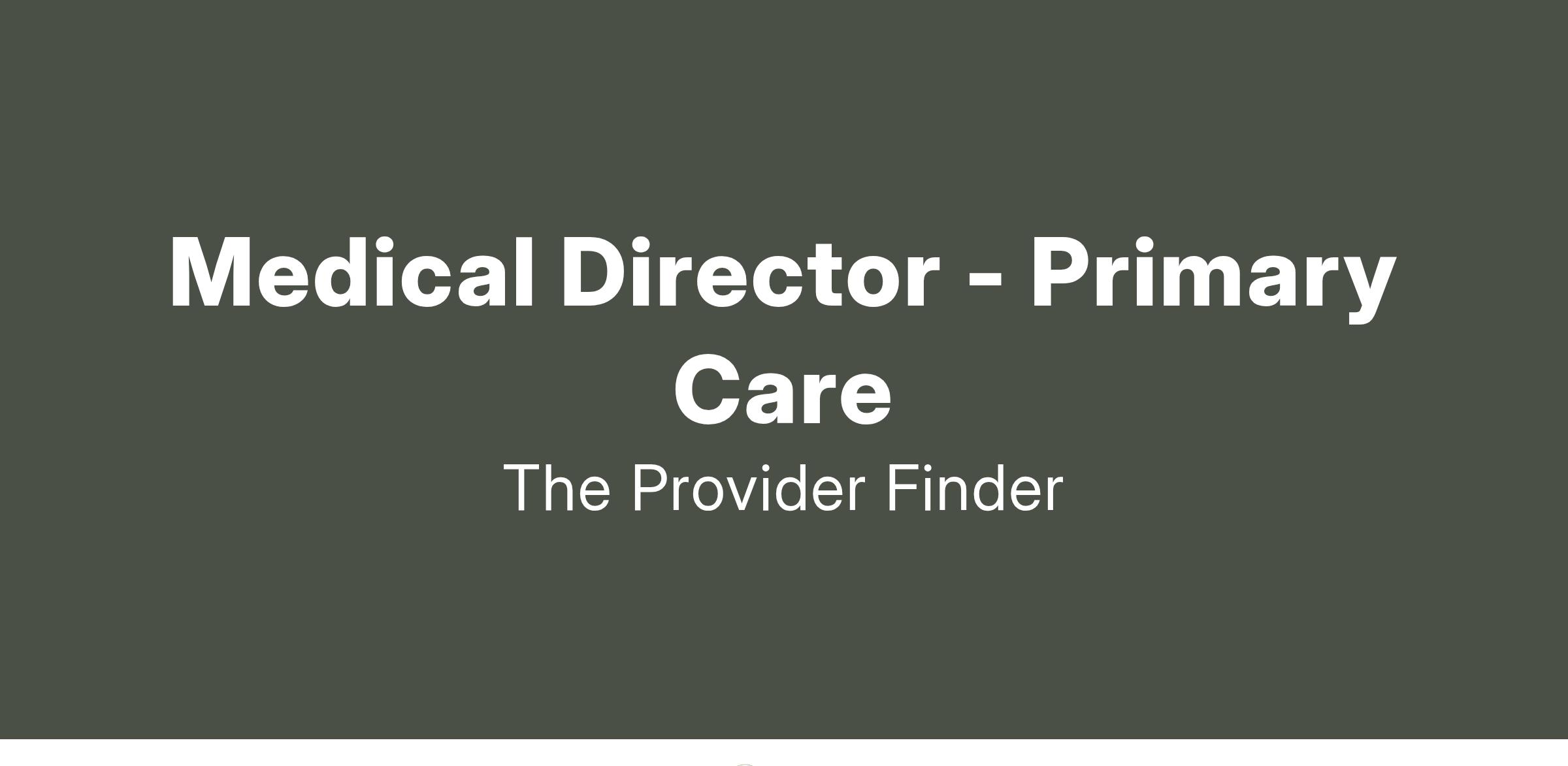 The Medical Director is responsible for the overall clinical and operational leadership of the primary care practice. The ideal candidate will have a strong clinical background in primary care, as well as experience in leadership and management. Leadership experience is not required in the role as long as candidate has desire for this next step in career.