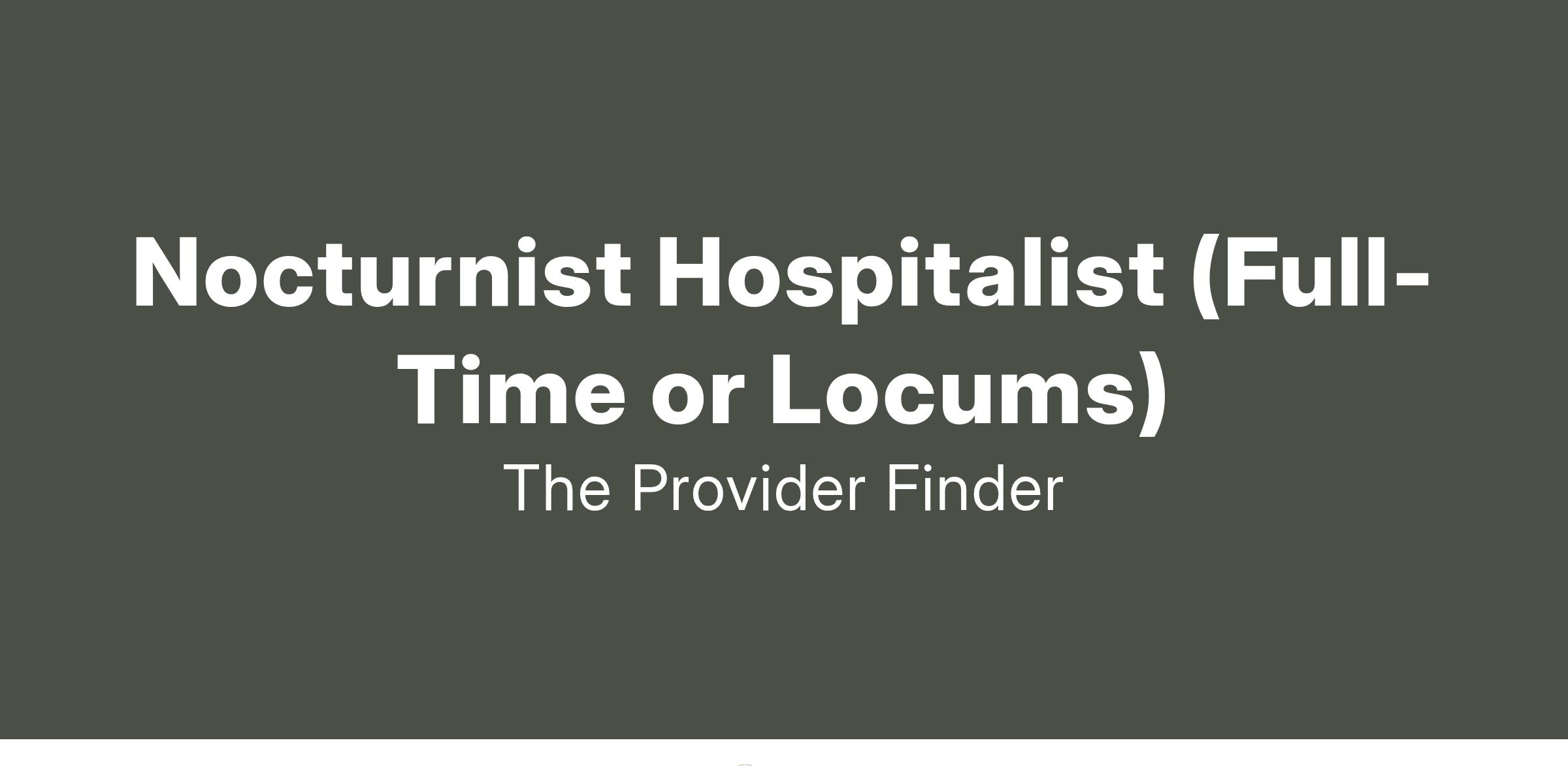 Nocturnist Hospitalist (Full-Time or Locums)