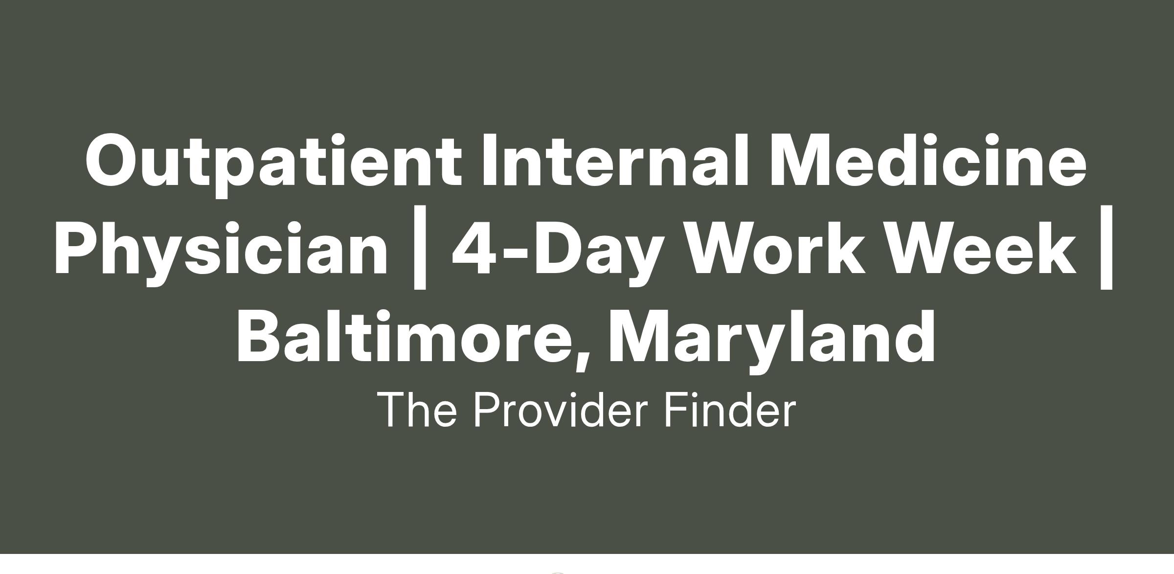 This great Baltimore non-profit healthcare organization seeks an outpatient internist to join its amazing and expanding primary care team to serve the patients and families of the metro city and its surrounding suburbs.