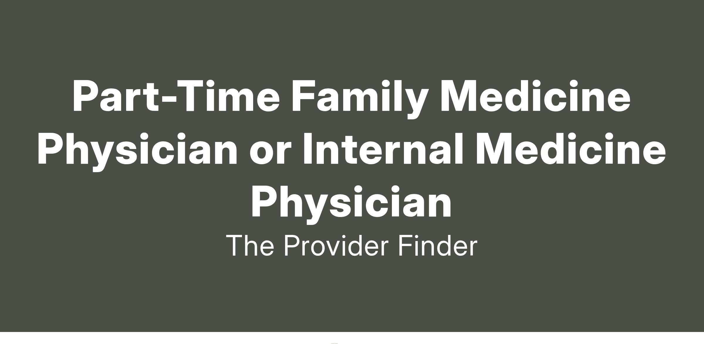 Part-Time Family Medicine Physician or Internal Medicine Physician
