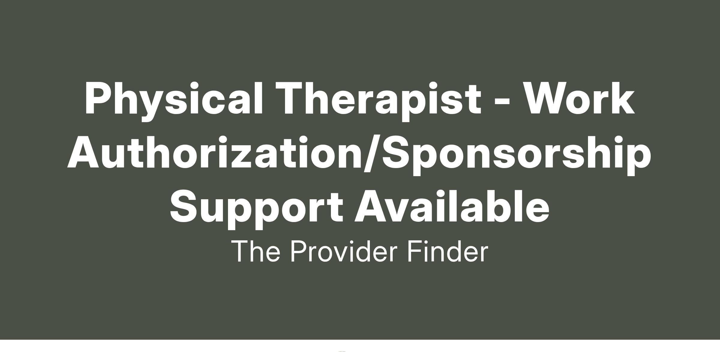 Physical Therapist (Full-Time, Permanent) - Work Authorization/Sponsorship Support Available