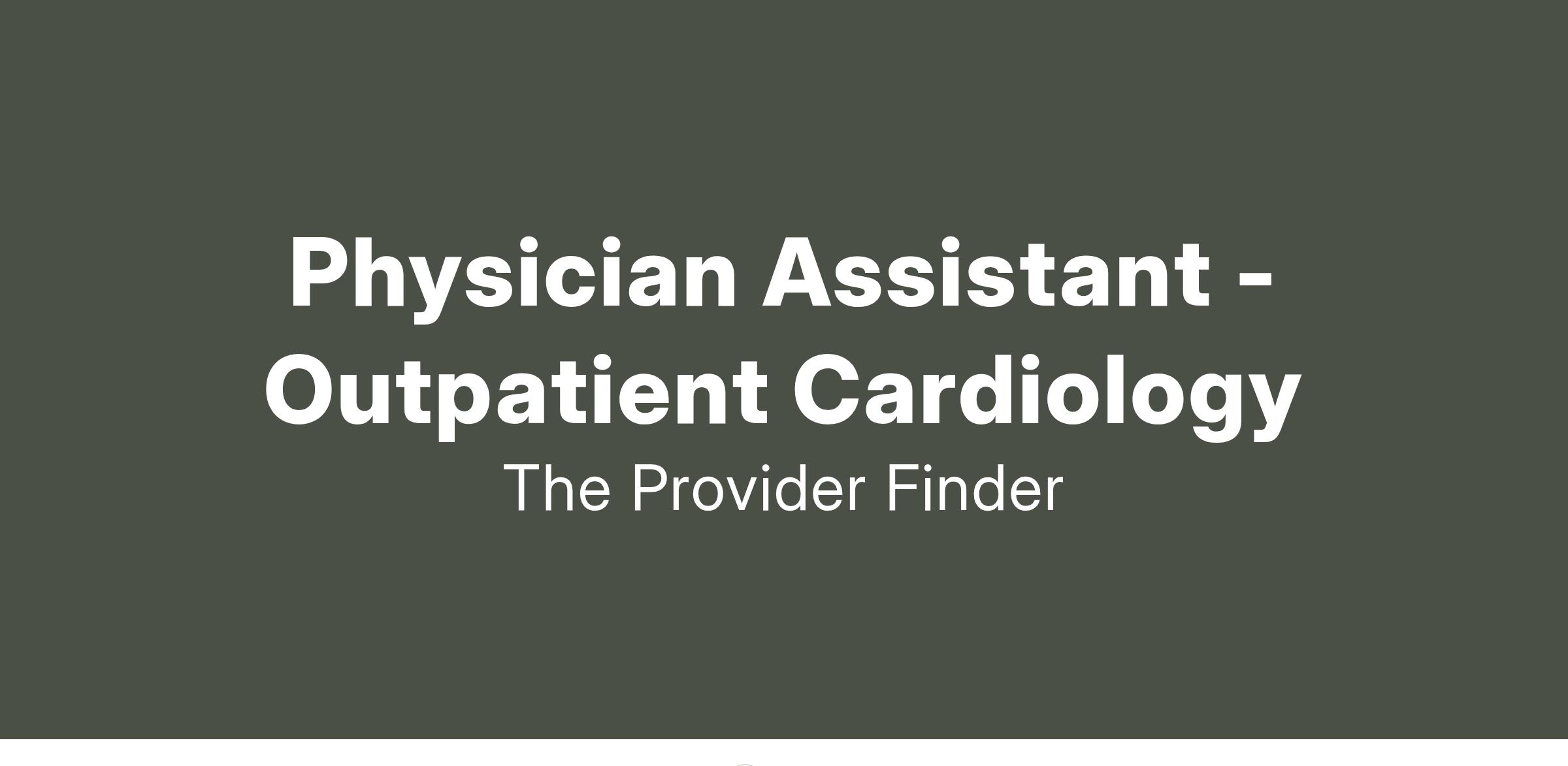 We are looking for a full-time PA to join our outpatient cardiology practice. The ideal candidate will have a strong background in cardiology and be able to provide comprehensive care to patients with a variety of cardiovascular conditions.