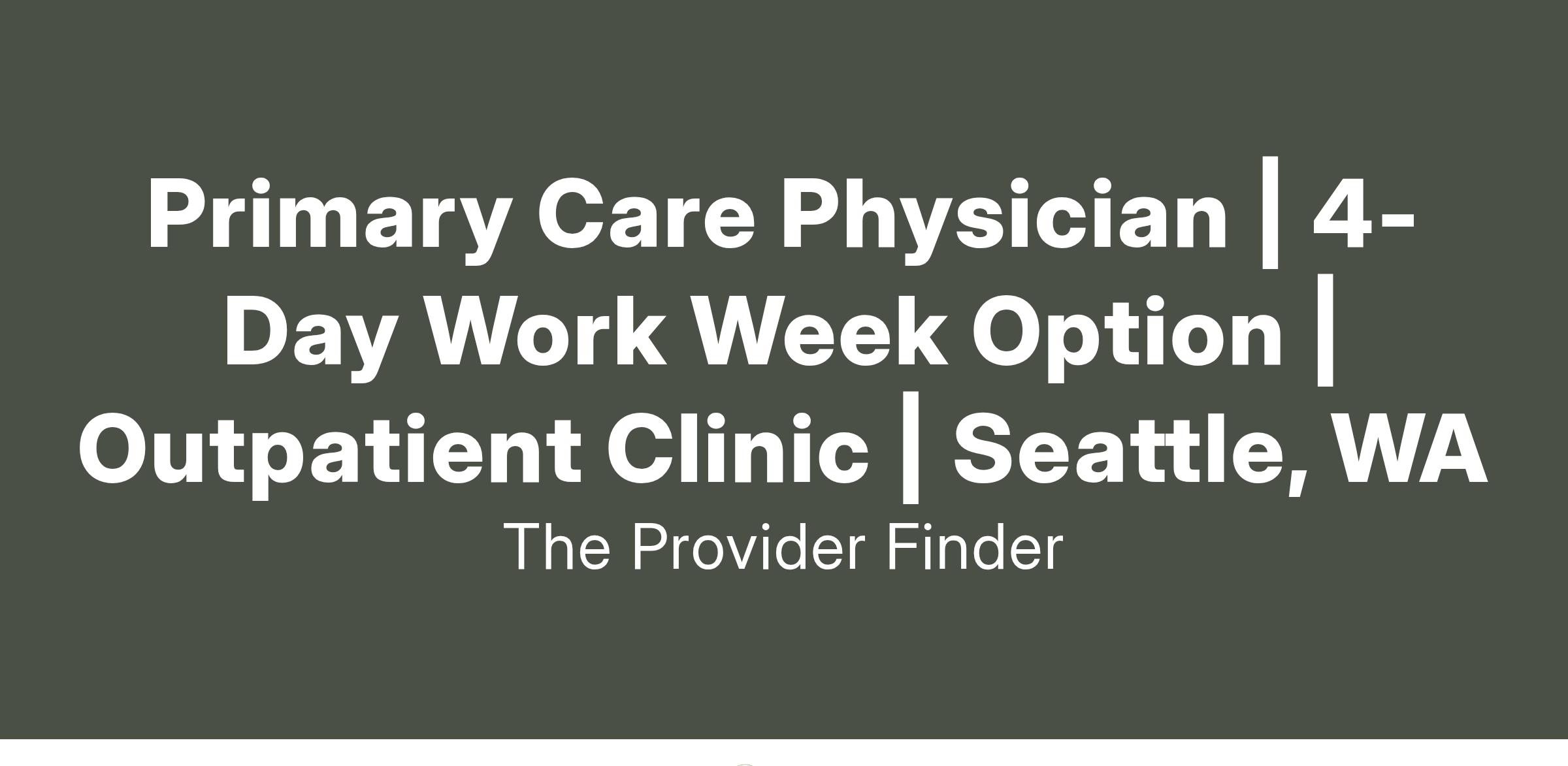 Seeking Board-Eligible/Board-Certified Family Medicine or Internal Medicine physicians (MD/DO), open to 2024-2025 graduates, will need to apply for Washington medical licensure (reimbursed)