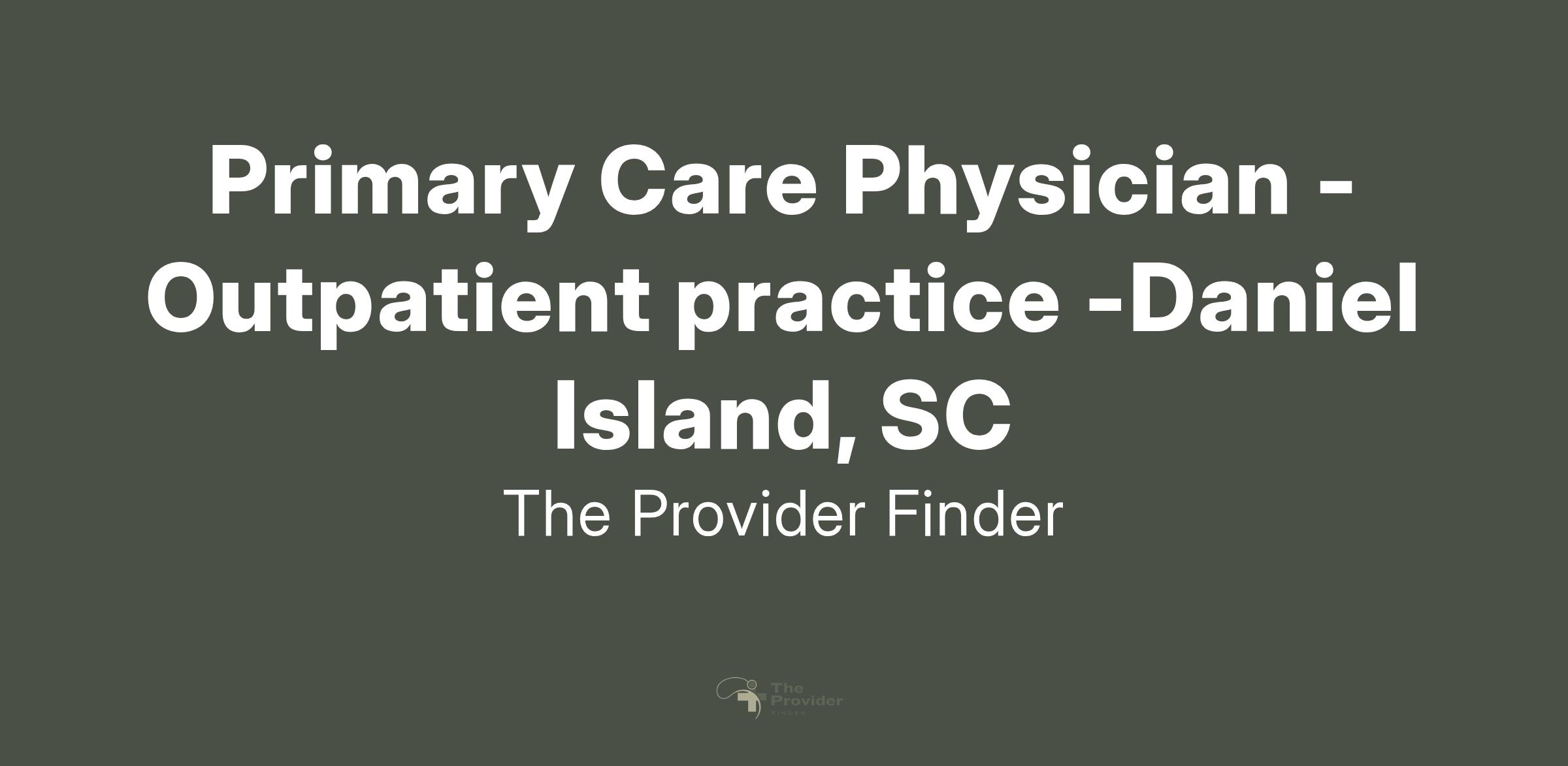 Top medical group in South Carolina is looking to hire a Primary Care Physician for their outpatient practice in the Daniel Island, SC area.