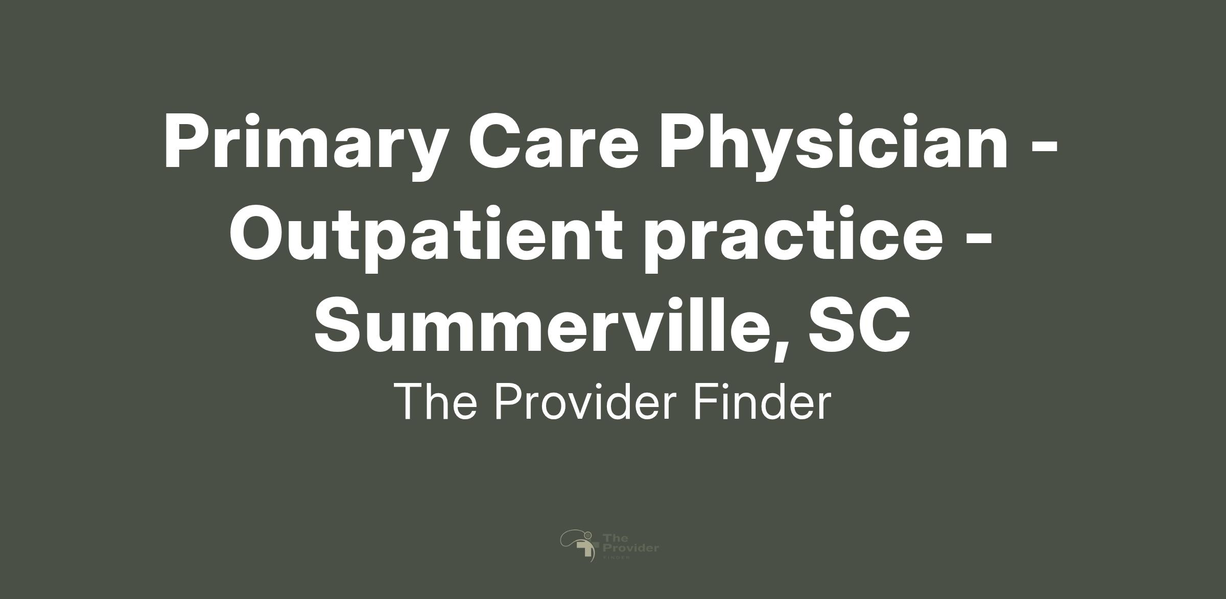 Top medical group in South Carolina is looking to hire a Primary Care Physician for their outpatient practice in the Summerville, SC area.
