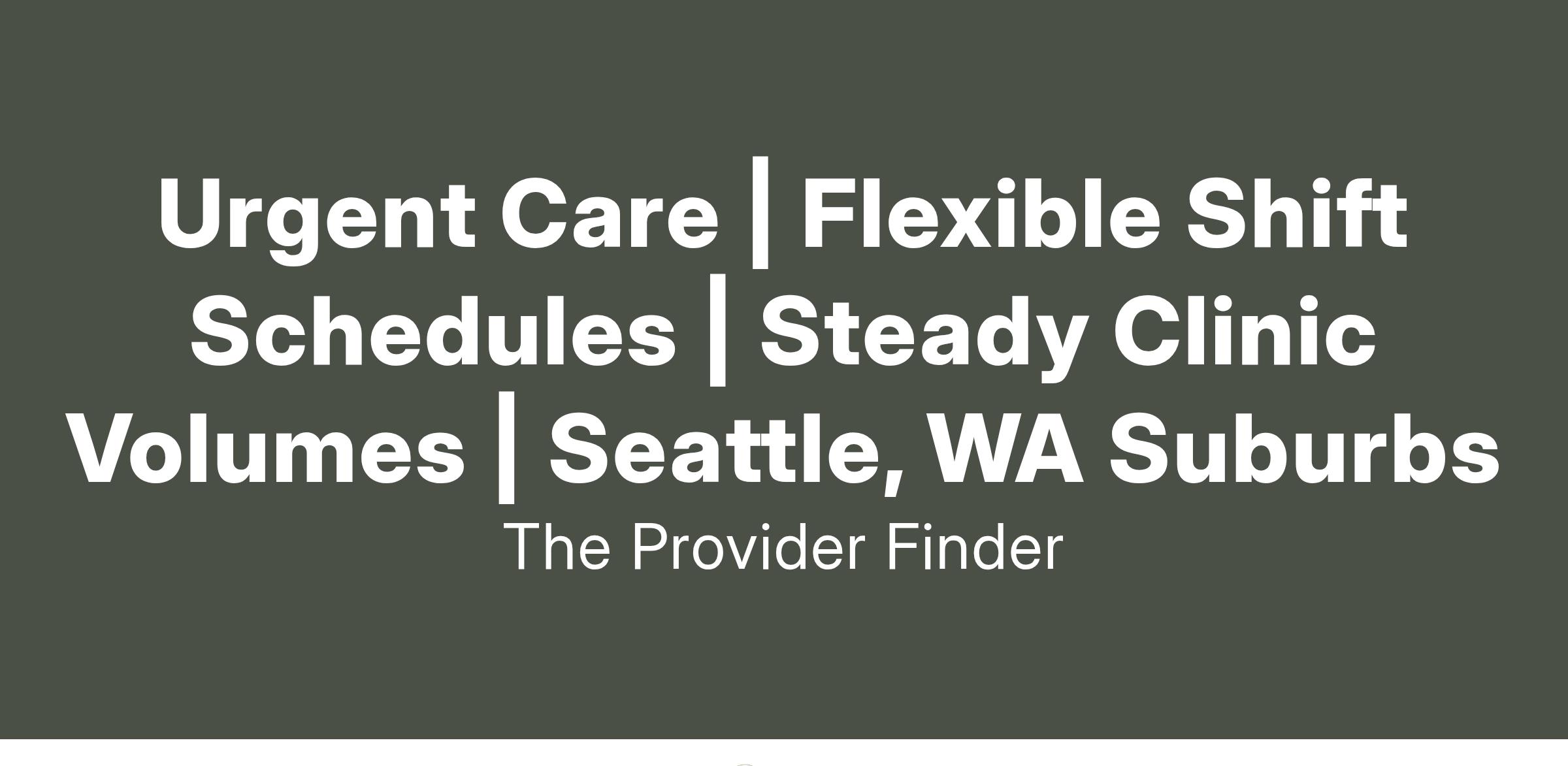 Urgent Care | Flexible Shift Schedules | Steady Clinic Volumes | Seattle, WA Suburbs