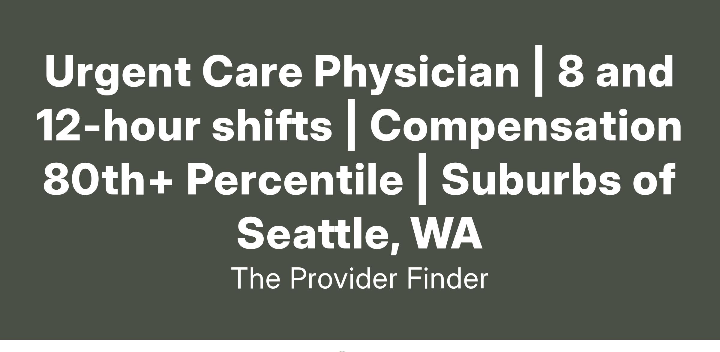 Seeking Board-Eligible/Board-Certified Family Medicine or Internal Medicine physicians (MD/DO), open to 2024-2025 graduates but urgent care experience is preferred, will need to apply for or obtain Washington medical licensure (reimbursed)